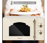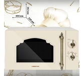 Объем 20 л, Мощность микроволн 700 Вт, Таймер, Разморозка, Звуковой сигнал, Подсветка, Цвет: бежевый, Цвет ручек — бронза, Легкая очистка