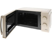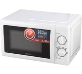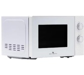 Микроволновая печь, внутренний объем: 20 литров, выходная мощность печи: 700 Вт, тип управления: механический, диаметр поворотного стола: 245 мм, количество уровней мощности: 5, автоматическое размораживание, таймер: 35 минут, тип открывания дверцы: кнопка, сигнал окончания приготовления, цвет: белый
