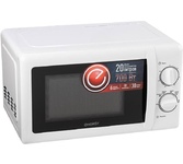 Печь микроволновая, объем 20л, выходная мощность 700 Вт, тип управления: механический, диаметр поворотного стола: 255 мм, количество уровней мощности: 5, автоматическое размораживание, таймер: 35 минут, тип открывания дверцы: ручка, сигнал окончания приготовления, цвет: белый