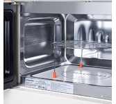 Общие данные: Габариты: 38.2x54.9x31.6 см Объем: 20 л Тип управления: электронный Режимы работы: соло + гриль Мощность микроволн: 1200 Вт Мощность гриля: 1000 Вт Режимы работы: Размораживание по весу Размораживание по времени Автоматические программы: 8 Режимы автоматического разогрева: 2 Управление и функции: Дисплей Тип дисплея: LED Цвет светящихся символов: Белый Звуковой сигнал Индикация времени до конца программы Индикация включения Индикация режима работы Таймер продолжительности работы Опция быстрого старта Защита от детей Элементы управления: Кнопки; Поворотные переключатели Встроенные часы Экранное меню: Не русифицированное; Пиктограммы Дополнительная информация: Вес нетто (кг): 12 Кабель питания: Со штепселем Тип открывания дверцы: Кнопка Напряжение: 220 В Частота: 50 Гц Материал поворотного стола: Стекло Внутреннее покрытие: Нержавеющая сталь Цвет фурнитуры: Черный Комплектация: Решетка для гриля Руководство по эксплуатации