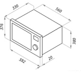 Объем 20 л Тип управления электронное Внутреннее покрытие камеры окрашенный металл Диаметр поворотного стола 245 мм Мощность микроволн 700 Вт Мощность гриля 800 Вт Тип гриля кварцевый Количество ступеней регулировки мощности 5 шт Размеры для встраивания 56x38x55см Открывание дверцы кнопка Направление открытия дверцы справа-налево Внутреннее освещение Да Таймер на отключение, максимальное время 60 мин
