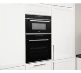 Особенности: Очистка AquaClean Автоматическая очистка без бытовой химии Налейте воду в миску, пригодную для микроволнового приготовления, поставьте в печь и включите программу AquaClean. Пар размягчит загрязнения на стенках камеры. После завершения программы протрите стенки влажной тканью. Автоматические программы Автоматические настройки упрощают приготовление некоторых блюд, например, попкорна, куриных наггетсов, пиццы или макарон. Вы выбираете тип блюда, вводите его вес, и печь автоматически настраивает мощность и продолжительность приготовления. Защитная блокировка Микроволновую печь можно заблокировать для предотвращения случайного включения. Гриль Гриль позволяет добиться особенно румяной корочки на блюдах. Комбинируя гриль с микроволнами, можно ускорить приготовление. По истечении половины времени печь предупреждает звуковым сигналом, что продукты необходимо перевернуть, чтобы они равномерно приготовились и запеклись до золотистой хрустящей корочки. InoxTerior Внутренняя камера микроволновых печей изго