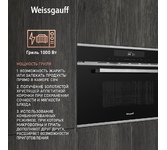 Печь микроволновая встраиваемая WEISSGAUFF Встраиваемая микроволновая печь Premium BMWO-349 DBSX Touch, 34л, 900Вт, черный [430203]