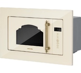 Общие данные: Габариты: 37.6х59.2х33 см Объем: 20 л Тип управления: механическое Режимы работы: соло + гриль Потребляемая мощность: 1080 Вт Мощность микроволн, Вт: 700 Мощность гриля: 800 Вт Цвет: слоновая кость/фурнитура бронза Управление и функции: Подсветка камеры Механический таймер Звуковой сигнал Дополнительная информация: Фасад из прочного стекла Открытие дверцы в любом режиме Дверца навесная Цельнометаллические ручки управления Возможность монтажа в навесной шкаф евростандарта глубиной 32 см Комплектация: решётка для гриля, инструкция на русском языке, комплект для установки (трафарет, зажим, болты, ориентир)