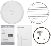 Общие данные: Габариты: 38.2x54.9x31.6 см Объем: 20 л Тип управления: электронный Режимы работы: соло + гриль Мощность микроволн: 1200 Вт Мощность гриля: 1000 Вт Режимы работы: Размораживание по весу Размораживание по времени Автоматические программы: 8 Режимы автоматического разогрева: 2 Управление и функции: Дисплей Тип дисплея: LED Цвет светящихся символов: Белый Звуковой сигнал Индикация времени до конца программы Индикация включения Индикация режима работы Таймер продолжительности работы Опция быстрого старта Защита от детей Элементы управления: Кнопки; Поворотные переключатели Встроенные часы Экранное меню: Не русифицированное; Пиктограммы Дополнительная информация: Вес нетто (кг): 12 Кабель питания: Со штепселем Тип открывания дверцы: Кнопка Напряжение: 220 В Частота: 50 Гц Материал поворотного стола: Стекло Внутреннее покрытие: Нержавеющая сталь Цвет фурнитуры: Черный Комплектация: Решетка для гриля Руководство по эксплуатации