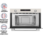 Общие данные: Габариты: 38.8x59.5x39.2 см Объем: 25 л Режимы работы: соло + гриль Мощность микроволн: 900 Вт Мощность гриля: 1000 Вт Цвет: черный Режимы работы: Количество ступеней мощности: 5 Автоматических программ: 8 Функция разморозки: по весу, по времени Гриль Микроволны Микроволны+гриль Режим попкорн Управление и функции: Сенсорная панель управления Цифровой дисплей Встроенные часы Защита от детей Индикация: режима работы, времени до конца программы Звуковой сигнал Дополнительная информация: Поэтапное приготовление Диаметр поворотного стола: 24.5 см Материал фронтальной панели: стекло Тип открывания дверцы: электронный Направление открытия дверцы: налево Комплектация: металлическая решетка, высокая решетка для гриля Размер ниши (В*Ш*Г): 365x568x450 мм Вес: 18.5 кг