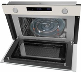 Особенности: Встраиваемая микроволновая печь мощностью 2000 Вт. Передняя панель выполнена из стекла. Свет зажигается при открытии дверцы. Настройка программ и таймера осуществляется при помощи сенсорного дисплея. Работает в режимах: микроволны и гриль. Сочетание работы нагревательных элементов позволяет размораживать, греть жидкости, делать попкорн и деликатно подогревать готовые блюда. Уникальные микроволновые печи Maunfeld с горизонтальной панелью управления органично впишутся в интерьер Вашей кухни. Стеклянная дверца открывается сверху вниз, как в духовых шкафах. Рабочая камера этой печи имеет большой объём 34 л. Разморозка Функция разморозки позволяет разморозить продукты, сохранив их свежесть и текстуру. Вы сможете насладиться великолепным вкусом мяса, птицы, рыбы, хлеба, пирожных и фруктов в любое время года. Разогрев Функция разогрева обеспечивает идеальную текстуру и цвет вашего блюда, благодаря чему оно выглядит удивительно аппетитным. Время приготовления продлевается на 30 секунд. Легкая очистка и д