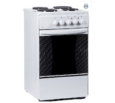 Плита отдельностоящая электрическая 50х60 см электрическая духовка, съемное внутреннее стекло (Cood Door), термостат, подсветка духовки, верхний,нижний тэн, 1 противень, 1 решетка, Рабочая поверхность (2 x o145 мм - 1200 Вт + 2 x O185 мм - 1500 Вт), нижний ящик для посуды, объём духовки 52 л. без крышки. В комплекте: кабель, регулируемые ножки. Цвет Белый. Упаковка картон.