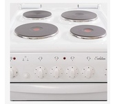 •электрическая плита * Цвет белый* •эмалированная рабочая поверхность * •4 конфорки * •электрическая духовка, 50 л * •ШхГхВ: 50x60x85 см * •механическое управление *
