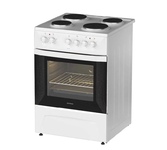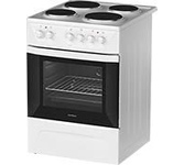 (ВхШхГ) 85х60х60 см.4 конфорки.Цвет белый. Терморегулятор, 5-позиционный переключатель режимов жарочного шкафа, ступенчатые переключатели режимов работы электроконфорок. Объем духовки 50л. 4 режима работы духовки. Освещение.