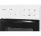 (ВхШхГ) 85х50х56см.Цвет белый.Стеклокерамика. 3 конфорки. Объем духовки 50л. 4 режима работы духовки. Переключатели поворотные. Индикатор остаточного тепла. Терморегулятор духовки. Подсветка духовки. Двойное стекло дверцы духовки. Класс энергопотребления А.