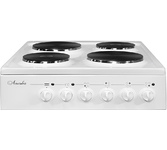 (ШхГхВ)500х600х840±5 мм.Цвет белый.Установленная мощность: 7.8 кВт.Масса нетто: 31 кг.Количество конфорок: 4.Мощность передней левой конфорки: 1.2 кВт Мощность передней правой конфорки: 1.7 кВт.Мощность задней левой конфорки: 1.7 кВт Мощность задней правой конфорки: 1.2 кВт.При включении жарочного шкафа блокируется правая ближняя конфорка. Тип духовки: электрическая Мощность вехнего ТЭНа: 0.8 кВт Мощность нижнего ТЭНа: 1.2 кВт.Температура жарочного шкафа регулируется от 50 до 300 °С Подсветка духовки.Дверца съёмная с двойным стеклом.Выдвижной ящик для хранения кухонных принадлежностей.
