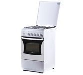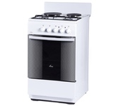 ШхГхВ: 50x58x85 см * газовая плита * Цвет белый * •эмалированная рабочая поверхность * Чугунные решетки * •4 конфорки * •газовая духовка, 50 л, Газ-контроль духовки, подсветка * механическое управление * Ящик для посуды