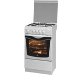 (ШхГхВ)50х50х85см.Цвет белый. 4 газ. горелки. Газ-контроль духовки, объем 50л, интегрированный розжиг горелок стола, чугунные решетки стола, освещение, выдвижной ящик. К-кт "Extra Effect" (противень и поддон). Стекл. крышка. Регулируемые опоры.