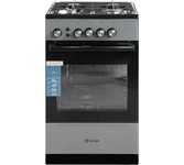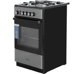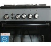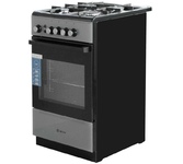 Размеры, мм - высота/ширина/глубина – 850/500/600 * Цвет - серый, стеклянный фасад *Основные характеристики варочной поверхности: 4 газовые конфорки 1,0/1,75/1,75/3,0 кВт. Электророзжик раб.стола * Основные характеристики духового шкафа: Горелка основная 2,5 кВт с УКП. Газ-контроль. Объём духовки 54 л. * Чугунная решётка * Хозяйственный отсек *
