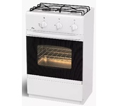 Типоразмер 50*50см, духовка с газ-контролем духового шкафа, 1 противень, цвет белый, черная эмалированная решетка рабочего стола
