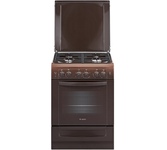 О модели GEFEST ПГЭ 6101-02 0001 Газовая плита коричневого цвета, ширина 60 см. Фасад и рабочий стол - эмалированные, на панели управления установлен таймер, со звуковым сигналом об окончании времени работы. Три газовые горелки дополнены одной электрической чугунной конфоркой, варочная панель накрывается металлической крышкой. Духовой шкаф - с газовым, термостатированным нагревом, нижний нагрев дополнен электрическим грилем, включаемым отдельно. Все газовые горелки с электроподжигом, духовка оснащена газ-контролем нижней горелки, съемными направляющими для противней и вертелом. Для хранения кухонной посуды предусмотрен выдвижной ящик.Ключевые преимущества: - Чугунные решетки - Электророзжиг - Газ-контроль духовки - Таймер механический - Гриль электрический - Вертел с электроприводом - Подсветка духовки одинарная - Съемные проволочные направляющие духовки - Выдвижной ящик для посуды и принадлежностей - Ножки регулировочные