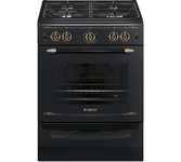 О модели GEFEST ПГ 6100-02 0187 Черная газовая плита шириной 50 см, фасад украшен декором в стиле "ретро". Эстетика и функциональность модели вполне заслуживает место на Вашей кухне, а ежедневное использование будет приносить удовольствие и радость от покупки. Электроподжиг кнопкой всех газовых горелок, газ-контроль в духовке и дополнительно - оснащение стеклянной крышкой рабочего стола и выдвижным ящиком для хранения посуды. Четыре конфорки различного диаметра и мощности удобны в эксплуатации, можно использовать посуду практически любого диаметра. Духовой шкаф оснащен термостатом, дополнительно установлен гриль для отличного запекания мяса.Ключевые преимущества: - Чугунные решетки (Изделия с серийными номерами 2103хххххх укомплектованы стальными решетками стола) - Электророзжиг - Газ-контроль духовки - Гриль - Подсветка духовки - Съемные проволочные направляющие духовки - Выдвижной ящик для посуды и принадлежностей - Ножки регули