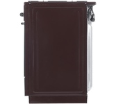 (ШхГхВ)500х600х850 мм.Цвет коричневый.Масса нетто: 34 кг Газ: природный или сжиженный.Количество горелок: 4.Мощность передней левой горелки: 1.5 кВт Мощность передней правой горелки: 2.3 кВт.Мощность задней левой горелки: 1 кВт Мощность задней правой горелки: 1.5 кВт.Тип духовки: газовая.Мощность газовой горелки пода: 2.3 кВт.Объём жарочного шкафа — 57 л.Электророзжиг.Подсветка духовки.Дверца съёмная с двойным стеклом.Выдвижной ящик для хранения кухонных принадлежностей Функция «газ-контроль» жарочного шкафа.Подставка для посуды малого диаметра.Стеклянный фасад выдвижного ящика для посуды. Стеклянная крышка.