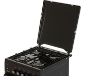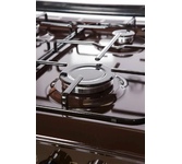 Горелки стола: Газовые – 4 шт. Мощность горелок рабочего стола: Горелка передняя левая/правая – 2,0/2,4 кВт. Горелка задняя левая/правая – 2,0/1,0 кВт. -Мощность горелки духовки – 2,5 кВт. -Объем духовки в литрах: 65 л. Верхний/нижний нагреватель духовки – газ. Газ-контроль духовки. Решетка рабочего стола – сталь. Крышка рабочего стола – стекло. Термометр духовки. Кнопка электророзжига горелок стола. Электрическая подсветка духовки. Противень – 2 шт. Цвет Коричневый