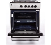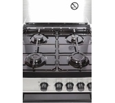 Горелки стола: Газовые – 4 шт. Мощность горелок рабочего стола: Горелка передняя левая/правая – 2,0/2,4 кВт. Горелка задняя левая/правая – 2,0/1,0 кВт. -Мощность горелки духовки – 2,5 кВт. -Объем духовки в литрах: 65 л. Верхний/нижний нагреватель духовки – газ. Газ-контроль духовки. Решетка рабочего стола – сталь. Крышка рабочего стола – стекло. Термометр духовки. Кнопка электророзжига горелок стола. Электрическая подсветка духовки. Противень – 2 шт. Цвет Серый