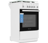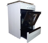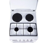 Размеры, мм - высота/ширина/глубина – 850/500/500 * Цвет - белый * Электророзжиг * 4 газовые конфорки 1,0/1,75/1,75/3,0 кВт * Электрическая духовка * Два нагревательных элемента: 1,2 кВт и 0,8 кВт * ТЭН-гриль - 1,8 кВт * Терморегулятор * Освещение * Вертел * Гриль * Механический таймер * Объём духовки 43 л. *