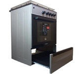 Размеры (ШхГхВ) 50x54х85см, объем духовки 50 л, 4 конфорки, метал. крышка, хоз. отсек, комбинированная (верх-2-газ/2-электро), электрическая духовка, профильная решетка стола, подсветка