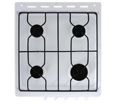 Размеры, мм - высота/ширина/глубина – 850/500/500 * Цвет - белый * 4 газовые конфорки 1,0/1,75/1,75/3,0 кВт * Интегрированный электрический розжиг * Освещение * Газ-контроль духовки * Объём духовки 43 л. * Большой противень * Хозяйственный отсек * Решётка для жарки * Чугунные решетки * Стеклянная крышка рабочего стола *
