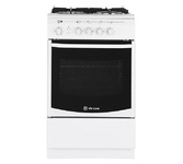 •газовая плита * Цвет белый * •эмалированная рабочая поверхность •4 конфорки, Газ-контроль конфорок * •газовая духовка, 50 л, Газ-контроль духовки * •ШхГхВ: 50x60x85 см * •механическое управление * Ящик для посуды