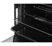 Электрический духовой шкаф; 4 программы; поворотные переключатели; рельефные направляющие; объем - 72л.; 2 стекла дверцы; 1 решетка; 1 противень; цвет - черный