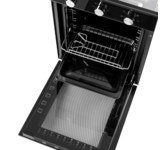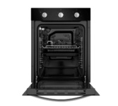 Компактный духовой шкаф Maunfeld EOEC516B выполнен в элегантном черном цвете с металлической ручкой дверцы и фурнитурой. Несмотря на свои оптимальные габариты (размеры устройства — 59.5×44.8×54.6 в см. (ВхШхГ)) объем внутренней камеры составляет 51 л, благодаря чему вы сможете без проблем помещать внутрь большую посуду и готовить несколько блюд одновременно. При помощи удобных поворотных механических переключателей легко управлять работой и настраивать необходимую температуру нагрева. 7 разных режимов приготовления предоставляют свободу в выборе блюд для приготовления. При помощи большого и малого гриля можно готовить вкусные овощи и мясо с хрустящей корочкой, конвекция обеспечит равномерное распределение горячего воздуха по периметру камеры, а при помощи традиционного режима можно быстро и эффективно готовить блюда из жирного мяса, мучные изделия и блюда средиземноморской кухни. Более того, вам не нужно постоянно находится около рабочей зоны, достаточно лишь установить необходимое время, и по ег