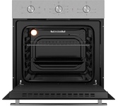 ВСТРАИВАЕМАЯ ЭЛЕКТРИЧЕСКАЯ ДУХОВКА • Класс энергоэффективности А • Объем камеры духовки: 58л. • Мультифункциональная духовка • Количество режимов работы: 6 • Электрический термостат • Цифровой таймер, часы • Управление: поворотные переключатели • Очистка