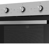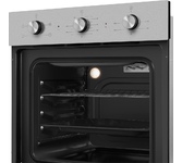 Духовой шкаф относится к стандартном типу духовок с шириной 59,5 см. Режимы духовки позволяют выбрать между разными комбинациями верхнего, нижнего нагревов и конвекции Благодаря конвекции циркуляция воздуха по всей камере духовки непрерывная и равномерная. При этом не нужно беспокоиться, что блюдо подгорит или останется сырым: температура воздуха поддерживается на одном уровне во всем духовом шкафу. Духовой шкаф оснащен таймером. Вы можете выбрать температуру и тип приготовления, а также отрегулировать время приготовления, поворачивая его по часовой стрелке. По истечении времени таймер подает предупреждение звуковым сигналом. Объем духовки составляет 78 л. Внутреннее покрытие камеры выполнено из эмали легкой очистки Easy Clean. К другим преимуществам также относятся: Утапливаемые переключатели. Такие элементы управления очень удобны, за ними очень легко ухаживать (на спрятанных ручках е собирается грязь), а также они великолепно смотрятся в интерьере. 7 режимов: среди которых разморозка и различные сочетания