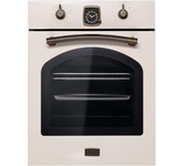 Духовой шкаф в ретро-дизайне, ширина 45 см, аналоговые часы в классическом стиле Frank Muller, таймера с функцией отключения, 9 режимов нагрева, объем духовки 45 л, телескопические направляющие на одном уровне, двухслойное остекление, каталитическая самоочистка, автоматическое отключение, в комплекте: 2 противня, хромированная решетка, цвет - слоновая кость; цвет ручек - бронза
