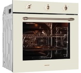 ШхГхВ: 595*570*595мм; электрическая; 74 л; 8+1 режимов; подсветка; конвекция; гриль, двойной гриль, таймер механический с отключением; хромированные направляющие, 3 съемный стекла дверцы, противень, хромированная решетка; фасад: бежевое стекло; ручки: