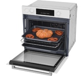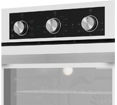 Размеры без упаковки (ВхШхГ), см - 59,5x59,4x56,7. Электрический духовой шкаф; 12 режимов; Приготовление с паром (резервуар на панели управления); LED дисплей; утапливаемые поворотные переключатели; система очистки паром; металлические направляющие; объем - 72л; 2 стекла дверцы; 1 решетка; 1 противень; 1 глубокий противень; Цвет: Белый; Материал панели управления: Стекло