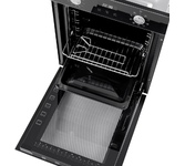 Компактный духовой шкаф Maunfeld EOEC516B выполнен в элегантном черном цвете с металлической ручкой дверцы и фурнитурой. Несмотря на свои оптимальные габариты (размеры устройства — 59.5×44.8×54.6 в см. (ВхШхГ)) объем внутренней камеры составляет 51 л, благодаря чему вы сможете без проблем помещать внутрь большую посуду и готовить несколько блюд одновременно. При помощи удобных поворотных механических переключателей легко управлять работой и настраивать необходимую температуру нагрева. 7 разных режимов приготовления предоставляют свободу в выборе блюд для приготовления. При помощи большого и малого гриля можно готовить вкусные овощи и мясо с хрустящей корочкой, конвекция обеспечит равномерное распределение горячего воздуха по периметру камеры, а при помощи традиционного режима можно быстро и эффективно готовить блюда из жирного мяса, мучные изделия и блюда средиземноморской кухни. Более того, вам не нужно постоянно находится около рабочей зоны, достаточно лишь установить необходимое время, и по ег