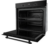 Тип духовки: электрическая. Тип управления: независимое. Переключатели: поворотные/сенсорные. Мощность подключения: 2359. Объем духовки: 78. Максимальная температура: 250. Класс энергоэффективности: A. Очистка духовки: традиционная. Материал внутреннего покрытия духовки: эмаль легкой очистки. Вид таймера: электронный. Количество стекол в дверце: 2. Освещение духовки: есть. Количество ламп подсветки: 1. Многофункциональная духовка: да. Открывание дверцы: вниз. Вес (нетто): 28.5. Габариты упаковки (ед) ДхШхВ: 0.66x0.64x0.65. Вес упаковки (ед): 28. Страна производства: Турция. Гарантия: 36 мес.. Размеры ниши для встраивания (ШхГхВ): 56 x 55 x 60 см. Размеры (ШхГхВ): 59.5 х 54.7 х 59.5 см. Цвет: черный. Особенности конструкции: дисплей, полностью стеклянная внутренняя поверхность дверцы духовки, утапливаемые переключатели. Функции: отсрочка старта, таймер. Режимы работы: конвекция, размораживание. Индикация: звуковая индикация. Класс энергоэффективности: A. Функции: конвекция, размораживание. Особенности конструк