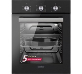 ВСТРАИВАЕМАЯ ЭЛЕКТРИЧЕСКАЯ ДУХОВКА • Класс энергоэффективности А • Объем камеры духовки: 60л. • Мультифункциональная духовка • Количество режимов работы: 5 • Электрический термостат • Механический таймер 90 минут • Управление: поворотные переключатели • Очистка камеры духовки– эмаль лёгкой очистки чёрного цвета, паровая очистка • Количество стёкол дверцы: 2, внутреннее стекло с напылением Low-е • Внутреннее съёмное стекло лёгкой очистки • Фронтальное освещение духовки • Хромированные направляющие • Комплектация: стандартный противень с антипригарным покрытием, хромированная решётка, круглый противень Diamond Материал панели управления: металл Цвет прибора: черный Цвет переключателей: серебристый