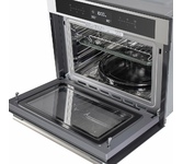 Тип духовки: электрическая. Тип управления: независимое. Переключатели: сенсорные. Мощность подключения: 3300. Объем духовки: 34. Максимальная температура: 230. Очистка духовки: очистка паром. Материал внутреннего покрытия духовки: эмаль легкой очистки. Вид таймера: электронный. Тип гриля: электрический. Мощность гриля: 1200. Мощность СВЧ: 900. Освещение духовки: есть. Многофункциональная духовка: да. Открывание дверцы: вниз. Длина кабеля: 1.5. Вес (нетто): 33. Габариты упаковки (ед) ДхШхВ: 0.7x0.67x0.58. Вес упаковки (ед): 41. Гарантия: 12 мес.. Размеры ниши для встраивания (ШхГхВ): 56 x 55 x 45 см. Размеры (ШхГхВ): 59.5 х 52.5 х 45.4 см. Цвет: черный. Режимы работы: СВЧ, гриль, конвекция, размораживание. Защита: защитное отключение, от детей. Функции: таймер, часы. Индикация: звуковая индикация, режима работы. Особенности конструкции: дисплей, утапливаемые переключатели. Переключатели: сенсорные. Духовка: электрическая, 34 л, эмаль легкой очистки, 3300 Вт. Размеры (ШxГxВ): 59.5 х 52.5 х 45.4 см; ниша 56 x 5