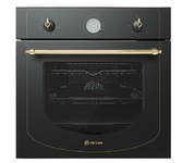Размер, мм - высота/ширина/глубина– 595/595/600 * Фасад - черное матовое стекло * Ручки цвет "латунь" * Объем духовки 58л. * Класс энергопотребления А+ * Поворотные переключатели, 6 режимов приготовления, Система охлаждения духовки, Конвекционный Гриль, Разморозка, Внутренняя подсветка, Механический таймер, Съемные направляющие для противней * Вес, кг - 33 *