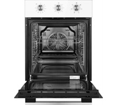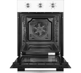 Общие данные: Габариты: 60х59.6х60 см Габариты ниши для встраивания: 56.4х56.4х56-57 см Объем: 64 л Гриль: есть Конвекция: есть Таймер: есть Подсветка: есть Самоочистка: эмаль Количество режимов работы: 6 Управление: Поворотные переключатели Переключатель режимов: 7-позиционный Механический таймер Безопасность: Система охлаждения духовки Комплектация: Большой противень Малый противень Решётка для жарки Шнур, вилка Дополнительная информация: Съемные направляющие для противней Фасад: белое стекло Номинальная потребляемая мощность: 2275 Вт Верхний ТЭН: 1,1 кВт 1 Нижний ТЭН: 1,1 кВт ТЭН - гриль: 2,0 кВт Вес: 33 кг