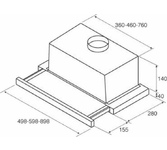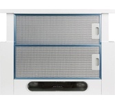 Вытяжка встраиваемая. Цвет белый. Габариты В/Ш/Г 16,7/59,8/29,6см. Режимы работы: отвод, рециркуляция. Тип управления электронное. Тип переключателей кнопки. Количество скоростей 3. Периметрическая система всасывания P.A.S. Тип освещения галогеновое. Жировой фильтр алюминиевый. Антивозвратный клапан. Производительность, 850куб м/час. Класс энергопотребления В. Потребляемая мощность,190 Вт. Уровень шума, 48дБ.