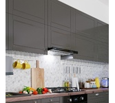 Вид установки встраиваемая Нержавеющая сталь, Ширина 500мм, Воздушный поток 700 м?/ч, 2 LED лампы, Мощность освещения 2x3 Вт, 1 aлюминиевый фильтр, необходимое количество угольных фильтров - 2 шт, Модель угольного фильтра VU-02, Уровень шума 44 дБ, управление - кнопочное, Вес нетто 4 кг, Турция