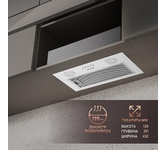 Производительность (куб.м/ч) 550; Ширина встраивания (см) 46,6; Режимы работы Отвод / рециркуляция; Количество скоростей 3;