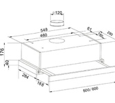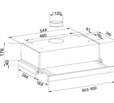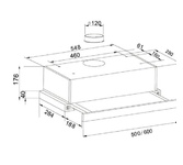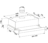 Полновстраиваемая вытяжка; Тип управления механическое; Количество скоростей 3; Фильтр алюминиевый; Размеры (мм) 526x285x172; Вес брутто/нетто 3,8/4,5кг; Производительность (м3/ч) 550; Уровень шума (дБ) не более 56; Освещение (Вт) 2х2; Общая потребляемая