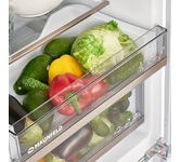 Встраиваемая холодильно-морозильная комбинация с функциями BioFresh и SmartFrost Особенности: Функция для хранения овощей и фруктов Fruit & Vegetable-Safe Хрустящий салат или клубника: самые нежные продукты заслуживают особого места, чтобы дольше оставаться свежими: контейнеры BioFresh. В контейнере для овощей и фруктов «Fruit & Vegetable-Safe» температура близка к 0 °C. В сочетании с постоянно преобладающей в нём влажностью, благодаря плотному закрытию, неупакованные фрукты и овощи чувствуют себя здесь особенно хорошо. Вам не нужно ничего настраивать. DrySafe Хотите, чтобы нежное филе телятины или свежее молоко оставалось свежими как можно дольше? Контейнеры BioFresh помогут вам: температура в контейнере «DrySafe» близка к 0 °C - идеальные условия для хранения даже самых чувствительных продуктов. И самое лучшее: все идеально настроено на заводе для немедленного использования - для сохранения свежести как можно дольше. SmartFrost Такой холодный, такой умный: технология SmartFrost эффективно снижает образовани