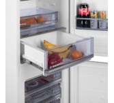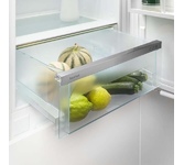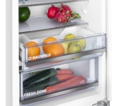Встраиваемый комбинированный холодильник-морозильник с EasyFresh и NoFrost Особенности: NoFrost Открывая морозильное отделение, вы хотите видеть замороженные продукты, а никак не лёд или иней. NoFrost защищает морозильную камеру от нежелательного обледенения, расходующего много энергии и порой стоящего достаточно дорого. NoFrost означает: никакого больше утомительного и продолжительного размораживания морозильного отделения, больше времени для других дел - и экономия денег. EasyFresh Наш контейнер EasyFresh гарантирует свежесть продуктов в вашем доме, как на рынке. Неупакованные фрукты, овощи или плоды: здесь всё хранится оптимально. Благодаря плотному закрытию контейнера под воздействием продуктов в нём повышается влажность воздуха. Таким образом, продукты остаются свежими долгое время. DuoCooling Благодаря двум полностью раздельным контурам охлаждения DuoCooling обеспечивает отсутствие воздухообмена между холодильным и морозильным отделениями. Продукты питания не засыхают,а запах не передаётся. А это значит