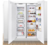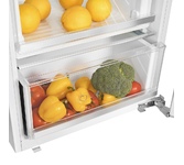 Встраиваемый комбинированный холодильник-морозильник с EasyFresh и SmartFrost Особенности: SmartFrost Такой холодный, такой умный: технология SmartFrost эффективно снижает образование инея во внутреннем пространстве и на замороженных продуктах. В результате снижается потребление электроэнергии, а морозильную камеру теперь можно размораживать гораздо реже. Еще одно преимущество: гладкую поверхность внутренних стенок легко и удобно мыть. EasyFresh Наш контейнер EasyFresh гарантирует свежесть продуктов в вашем доме, как на рынке. Неупакованные фрукты, овощи или плоды: здесь всё хранится оптимально. Благодаря плотному закрытию контейнера под воздействием продуктов в нём повышается влажность воздуха. Таким образом, продукты остаются свежими долгое время. DuoCooling Благодаря двум полностью раздельным контурам охлаждения DuoCooling обеспечивает отсутствие воздухообмена между холодильным и морозильным отделениями. Продукты питания не засыхают,а запах не передаётся. А это значит: меньше выбрасывать, реже ходить за по