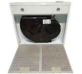 Коллекция Classic, мощность -400 м3/ч, 3 скорости, кнопочное переключение, анодорованный алюминиевый рамочный фильтр, шумность- 54 дБ, работает только в режиме вытяжки, 2х40Вт, цвет - белый